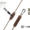 All the elements are placed on a sturdy braided line with a lead core with a load-bearing capacity of 45 lbs and a length of 80 cm. There is a quick swap clip at the end to quickly change the weight. This position allows for longer casts. To mask and protect the clip, there is a tube THE END Heli Protect. Conical beads Heli Stopper allow the rig to be placed at a greater distance from the lead, which is necessary mainly when there is mud or plants on the bottom. Thanks to a quick swap swivel with a ring, it’s very easy to quickly change the rig. There is a loop at the end of the lead braided line to attach it securely to the main line. The lead core of the braided line copies the bottom, making it absolutely inconspicuous.