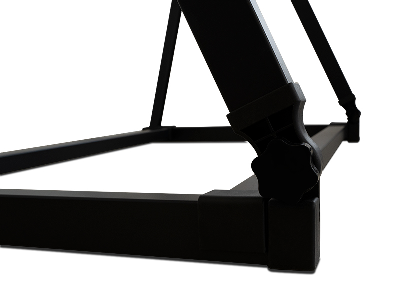 Made from massive aluminium profiles to ensure stability and durability. The main part of the rack can be tilted in order to fit the space you wish to display it in. The rod slots are made of foam to protect the rods and to equally divide the space between them.