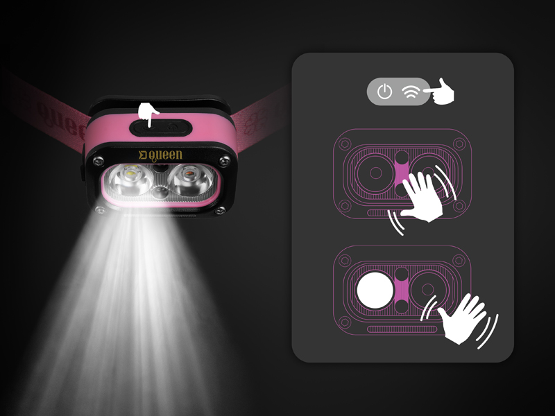By pressing the button for the fourth time, the red position light gets activated to easily find the headlamp in the dark. This light mode has a capacity of 24 hours. The second button activates the motion sensor that can turn the light on or off with a wave of your hand.