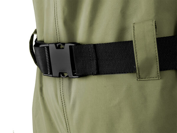 Mudeli õlarihmad on reguleeritavad ning komplektis on eemaldatav vöö, et püksid istuksid hästi iga kehatüübi järgi. Tihedalt ümber kinnitatav vöö vähendab riski, et vette kukkudes tungiks vesi pükstesse. Kummisaabastel on tugev ja stabiilne tald, mis peab vastu ka karmimates tingimustes. Lisaks on neil praktiline kannaots, mis teeb saapad kergesti jalast võetavaks.