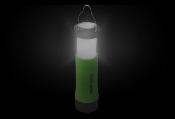 A hand light that is a necessity for all your fishing trips. Delphin ZUUM is very compact due to its size and very easy to carry. Thanks to its multi-functional usage it is irreplaceable companion when light condition gets worse. It can be used as a classic hand-light its light illuminates directly from its head. After turning its head its middle part can be pulled out and turned into a lamp. This lamp is self-standing as well as it can be hung due to its wire hook. And there still some more advantages of this light. Its inner LED light has three levels of illumination. strong. dipped light. flashing stroboscope. There are infinite numbers of possibilities how Delphin ZUUM can be used. from a classic hand light to hanging lamp. light for your bivvy. positional light…. ZUUM is available in three colours: green. orange and blue.