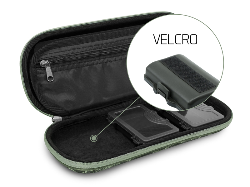 A luxury carp rig case suitable for the most demanding anglers. The hardened outer part protects your rigs and a handle on the upper side offers comfort during the transport. This case comes with a zip with a plastic pull.