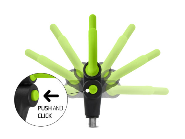 Hoidja on 17 cm laiune ning varustatud universaalse keermega, mis sobib enamiku turul olevate ridvaharkide ja tugedega. Musta ja rohelise värvilahendusega sobitub see ideaalselt Delphini REAXE feeder-sarja toodetega.