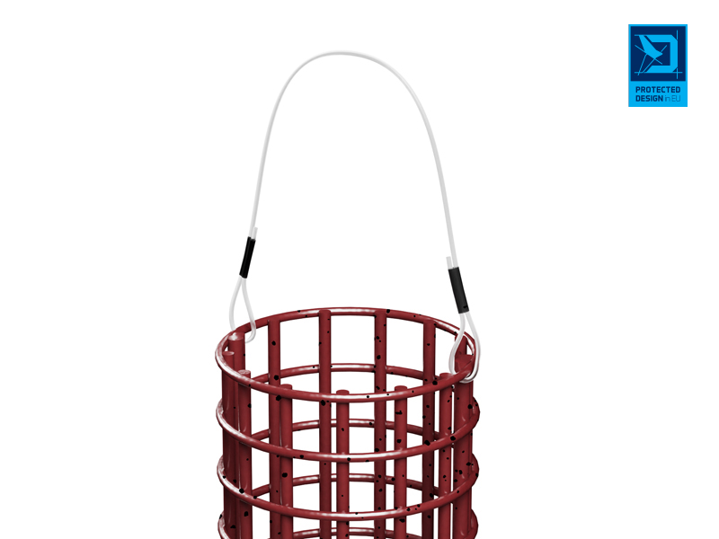 Ümar korv on valmistatud tugevast traadist, mis ei deformeeru sööta täites. Vahe raskuse ja korvi vahel võimaldab sööta ka sõrmedega tugevalt suruda. Matt viimistlus väldib vees peegeldusi ning tagab diskreetse esitluse. Ülaosas paikneb tugev surutud aas, mille abil saab söödakorvi lihtsalt rakendusele kinnitada.