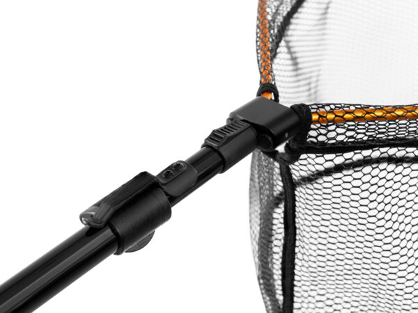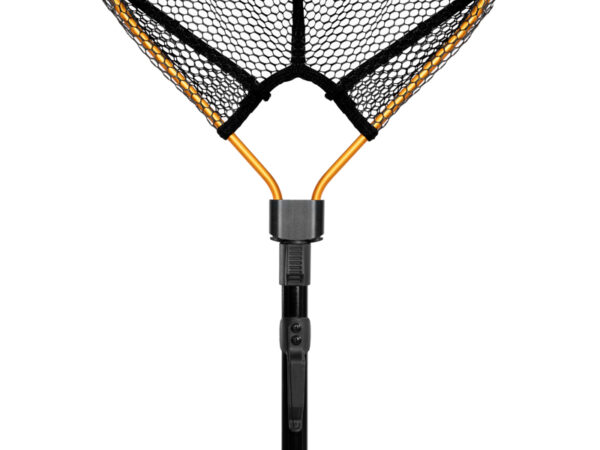 The folding net head is made from sturdy material and resistant to mechanical damage even when you use it frequently in rough conditions. The folding system is its main advantage—simply fold or unfold it with a clip placed on the top of the handle.