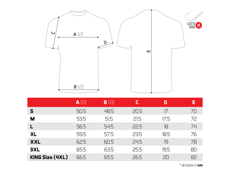 T-särk ja trükk on kõrge kvaliteediga. Särki pakutakse laias suuruste valikus alates S-st kuni KING SIZE-ni (vastab 4+XL ehk XXXXXL), sobides hästi ka suure kehakaaluga (üle 135 kg) kandjatele.
