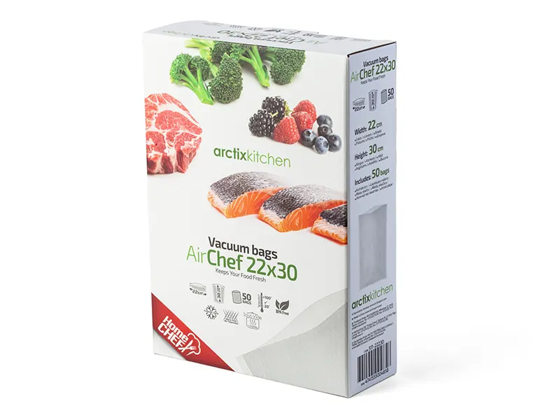 Vaakumkott Rullis Arctix – kvaliteetsed vaakumkotid 22 cm x 5 m (2 tk) Arctix vaakumkotid rullis võimaldavad koti pikkust ise määrata vastavalt vajadusele – lõika lihtsalt sobiva pikkusega tükk ja sulge see vaakumpakendajaga. See teeb toiduainete säilitamise paindlikuks ja ökonoomseks. Kotid sobivad liha, kala, köögiviljade, puuviljade ja valmistoidu pakendamiseks ning on suurepärased nii külmutamiseks kui [...]